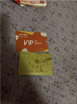 物品名称及描述:现有家庭号购物卡一张,内含530元,现495元出。龙兴烘培VIP卡张,内含330元,现300元出。