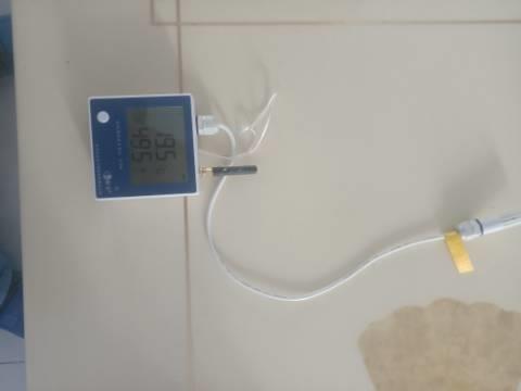 可以手机绑定,随时查看温度、湿度。电池可充电。