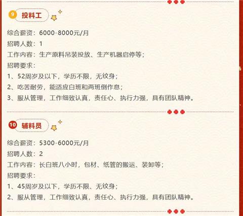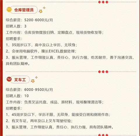 不等,加微信后推给你人事部自己聊。带媳妇一起来工作的自己和人事部招聘人员聊好。叉车工需要试车,其他岗位视频面试。